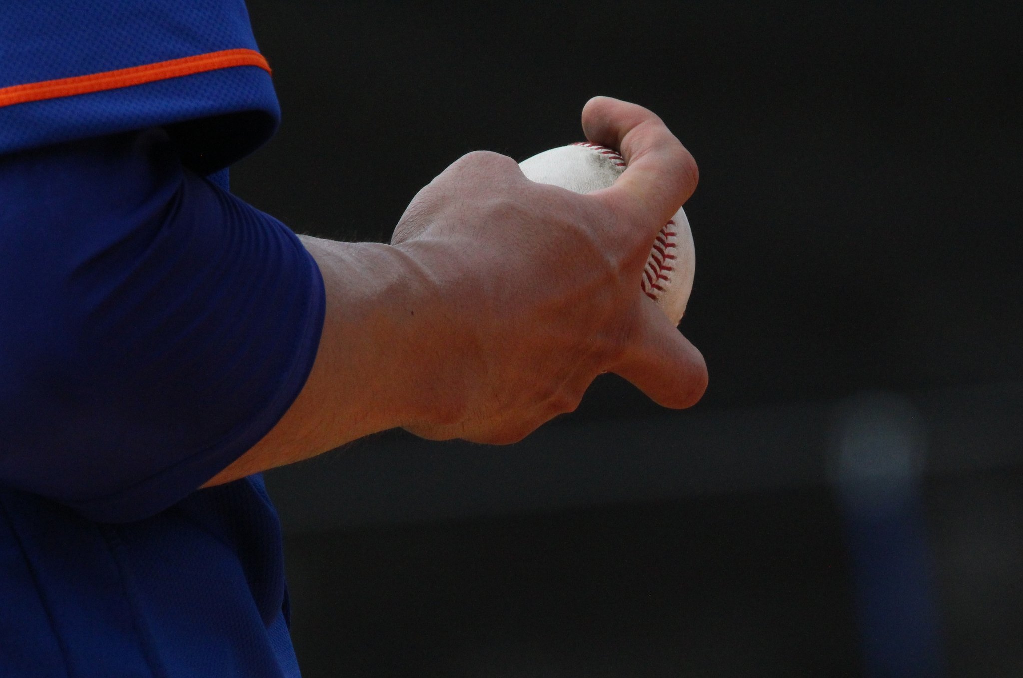 The forkball is a variant of the splitter (both considered off-speed pitches) known for its big downward break as it approaches the plate. Because of the torque involved with snapping off a forkball, it can be one of the more taxing pitches to throw. In the image, we can see the grip, holding the ball between two fingers.
